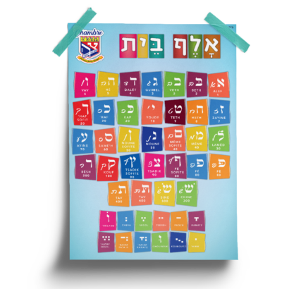 Un très joli poster du Aléf Beth en lettres hébraïque phonétique et la valeur numérique de chaque lettre