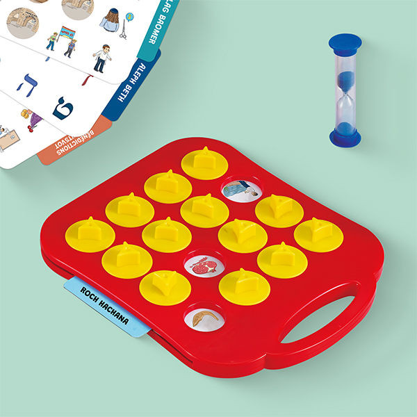 Un jeu idéal pour jouer seul ou à plusieurs, développer la mémoire, apprendre à respecter les règles… tout en découvrant l’Aleph-Beth, les fêtes juives et les Béra’hot (bénédictions) !