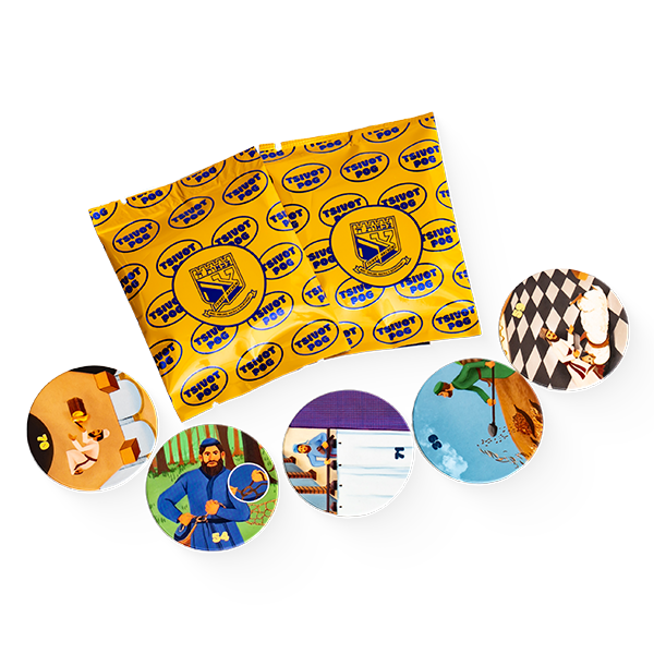 5 Pogs cartonnés, choisis aléatoirement, à collectionner !