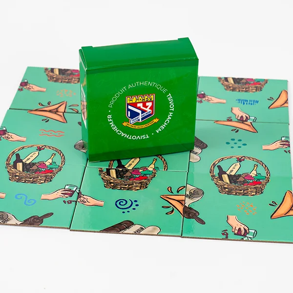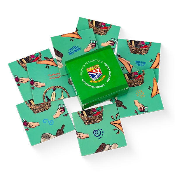 18 x 18 cm • 9 cartes en carton épais • Thèmes : Souccot et Pourim