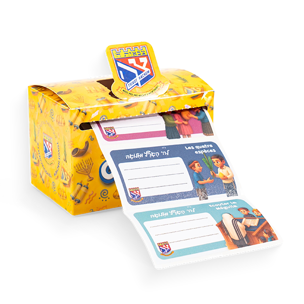Personnalise toutes tes affaires avec la Sticker Box Tsivot Hachem et ses 100 autocollants colorés sur le thème des Mivtsaïm !