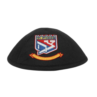 Kippa en velours brodée avec le logo de Tsivot Hachem