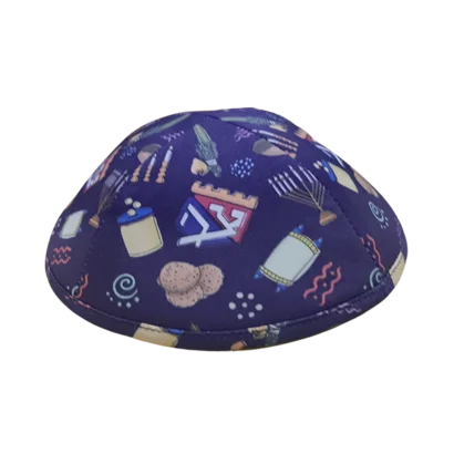 Kippa bleue avec motif des logos de Tsivot Hachem